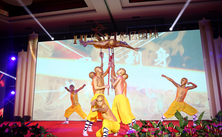 在全場的見證下,華億國際相關負責人分別與百貨類、餐飲特業類品牌代表,簽訂入駐合作協議,現場禮花飛揚,臺下的嘉賓紛紛鼓掌慶祝。少林高僧們表演的《十八銅人》,不僅具有濃郁的阜陽地方文化氣息,更是象征著團結合作、共贏未來,呼應了招商大會的主題,把大會推向高潮。最后,來賓們舉杯相慶,共同為阜陽華億國際的美好未來祝福。