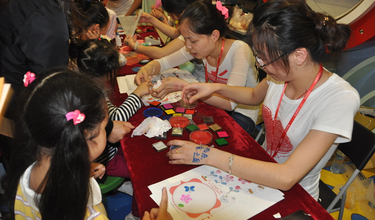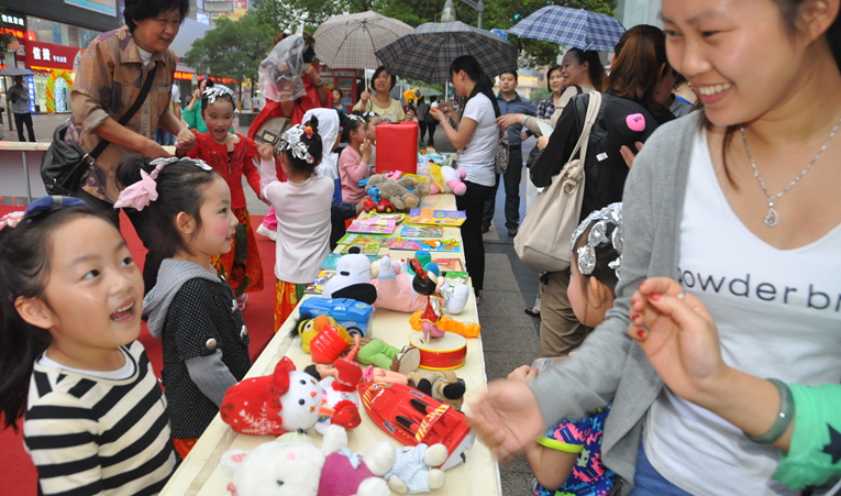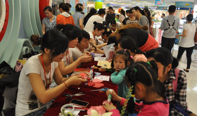 手工剪紙花活動現場,工作人員一對一的耐心指導,讓孩子們深深感受中國傳統民族文化的獨特魅力。少兒科舉大賽活動讓小朋友充分發揮聰明才智,收獲豐厚獎品。六一大型愛心義賣活動雖然在蒙蒙細雨中進行,但細雨沒有阻擋孩子們的愛心,紛紛奉獻出自己的玩具、書籍。豐富的活動設置,讓孩子在華億國際玩轉六一,盡情享受屬于自己的節日。