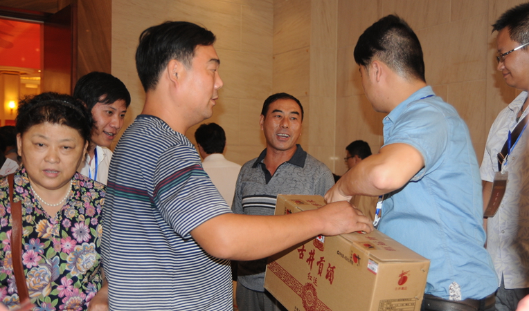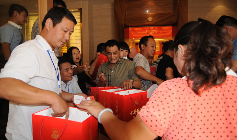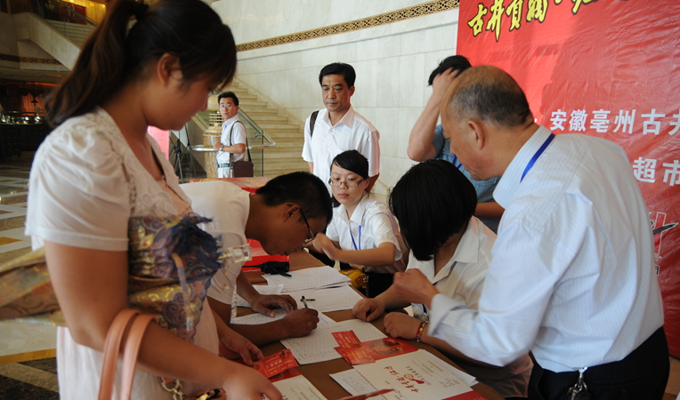 在華億超市公司工作人員的精心策劃布置下,品鑒會活動現(xiàn)場顯得十分高端、喜慶。酒店門口大紅的空飄隨風(fēng)擺動,條幅字幕顯眼,拱門立于路邊,吸引了無數(shù)路人眼光。酒店內(nèi),大紅色的迎賓導(dǎo)視系統(tǒng)十分醒目,工作人員精心的將會廳內(nèi)立柱全部包裹,現(xiàn)場一片紅紅火火。上午10時,參加古井貢·紅運上市品鑒會的重點客戶陸續(xù)到來,客戶在簽到處將抽獎券放入抽獎箱后,便來到宴會廳入席,品嘗果品,觀看華億集團發(fā)展成果介紹短片,現(xiàn)場一片喜氣洋洋。