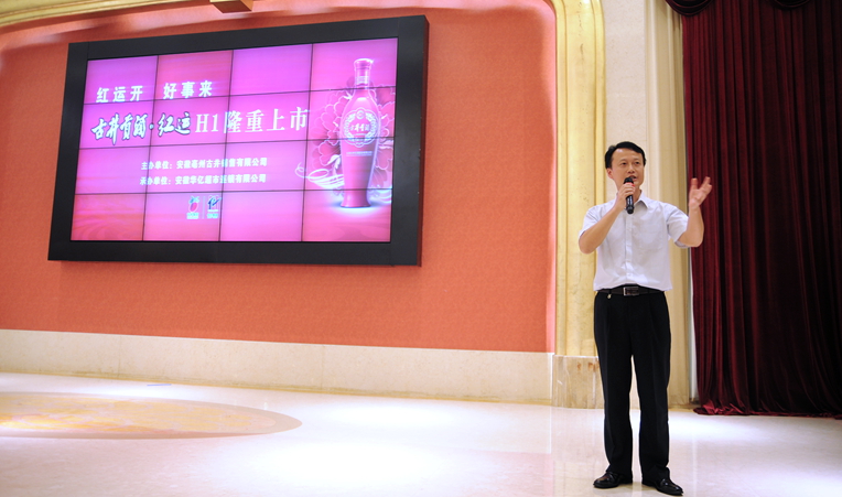 中午12時,55桌的會場內(nèi)座無虛席,500多名市區(qū)各大酒店、流通商貿(mào)精英匯聚一堂,華億超市古井貢·紅運H1項目上市品鑒會在大氣磅礴精彩紛呈的開場舞蹈中正式開始。古井銷售公司皖南營銷總監(jiān)薛曉峰發(fā)表講話。他表示,古井貢·紅運是古井集團繼年份原漿系列之后推出的又一戰(zhàn)略性全國主推產(chǎn)品,紅運擁有全國老八大名酒強大的品牌優(yōu)勢,它秉承了古井貢酒的釀造工藝,入口幽香淡雅,定價精準,是婚宴用酒、節(jié)日禮酒、親朋聚會用酒的最佳選擇。此次選擇與華億超市公司合作,主要是看中華億集團在在商貿(mào)流通行業(yè)的強大實力。