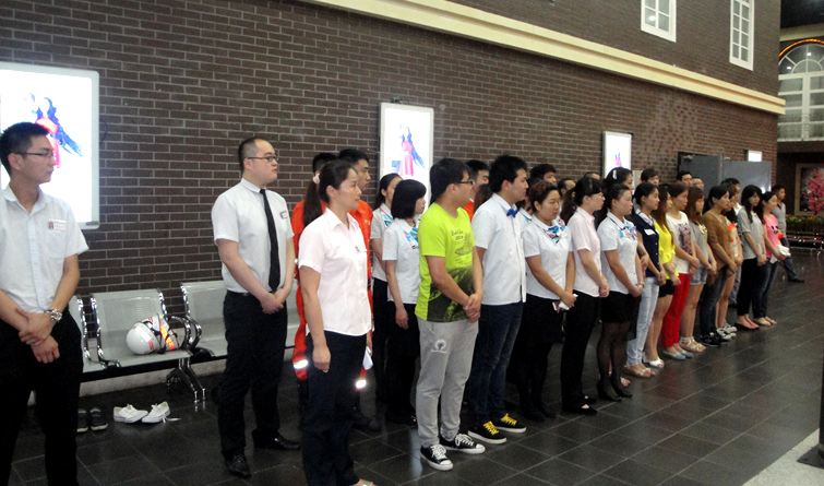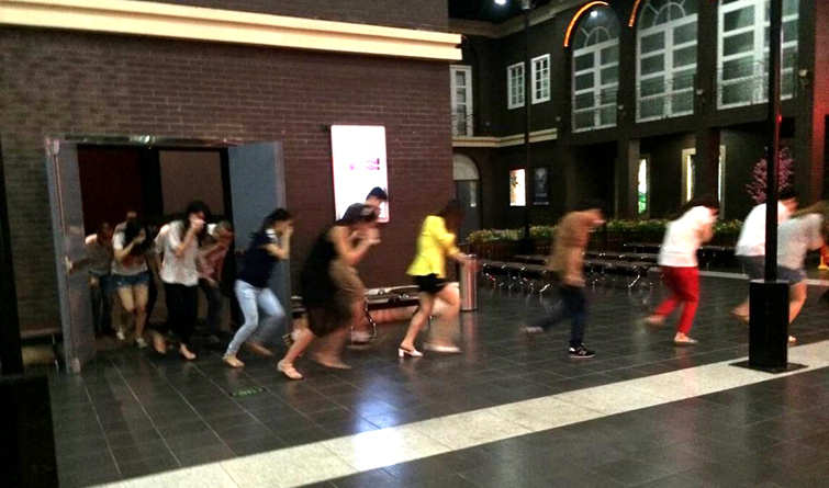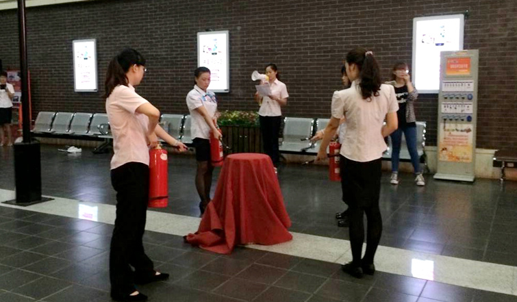 8時40分,大潤發3樓華億環球影城突然“濃煙四起”,工作人員迅速趕往火災現場,啟動滅火設備,并迅速安排顧客通過安全通道,撤離“火場”,消防演練緊張有序地開展,效果良好。