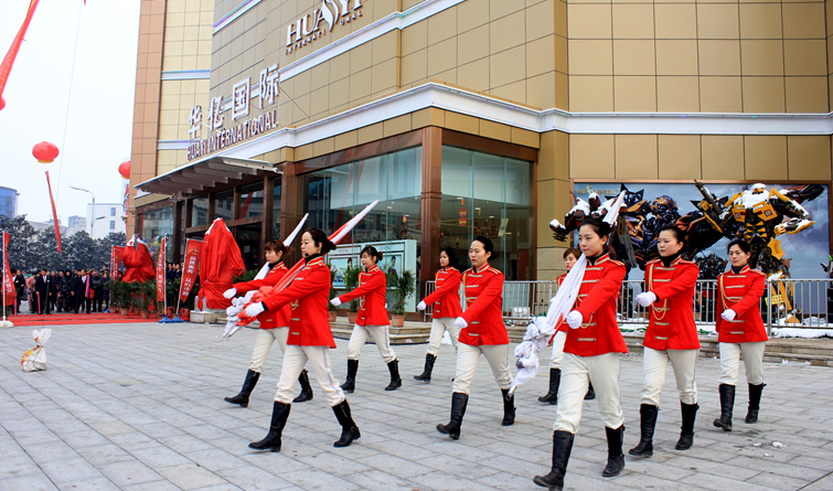 一場冬雪后的潁州格外清新,放眼望去,銀裝素裹,新年的氣氛愈發濃烈。位于潁州路與潁河西路交匯處的華億國際門前廣場上,彩球隨風飄揚,紅地毯直通商場入口,顯得十分喜慶。數千名潁州市民翹首企盼,等待商場開門營業,成為華億國際的首批顧客。上午8:58,商場試營業升旗儀式正式開始,在華億軍樂隊演奏的莊嚴《國歌》和《華億之歌》歌聲中,五星紅旗和華億集團司旗緩緩升起,華億員工和全場市民紛紛高唱國歌,向國旗行注目禮。