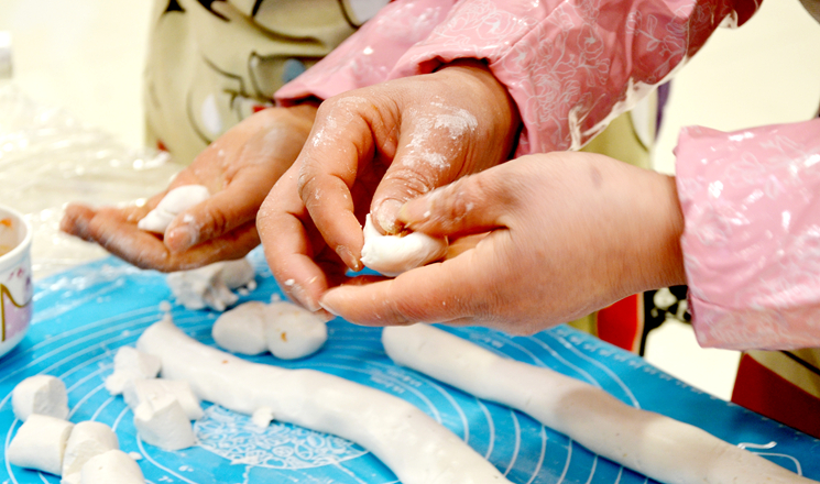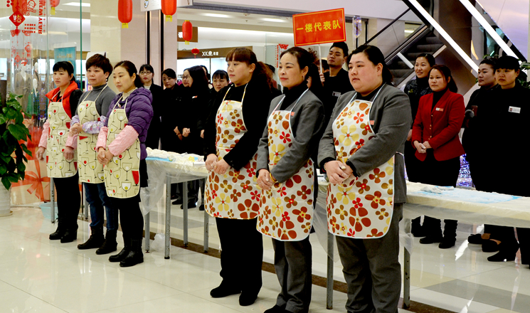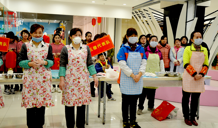 本次元宵DIY比賽共有來自后勤行政部和商場五個樓層,共6支隊伍參賽。參賽隊員工身著統一的圍裙,帶上口罩,揪面、搟面、填餡、搓面一氣呵成。不到30秒的時間,一個個圓溜溜的湯圓就展現在大家眼前。在創意比拼環節,“珍珠小湯圓”、“紫薯湯圓”、“橙色乒乓球湯圓”、“綠豆笑臉湯圓”等等,形狀各異,五顏六色,讓觀眾目不暇接。現場的拉拉隊員熱情高漲,為自己的參賽隊伍吶喊助威。