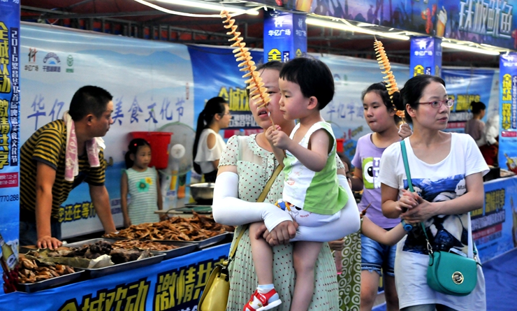 在啤酒美食文化節(jié)現(xiàn)場(chǎng),工作人員還準(zhǔn)備了近百?gòu)埡?jiǎn)易餐桌,方便市民歇息品嘗美食。不少市民全家出動(dòng),圍坐在桌前,暢飲免費(fèi)啤酒,品嘗特色美食,觀看著精彩的歌舞節(jié)目表演,體驗(yàn)著多彩的美食文化。在美食文化節(jié)現(xiàn)場(chǎng)還有飛鏢奪禮、淘氣堡、旋轉(zhuǎn)木馬、電動(dòng)車(chē)等游戲項(xiàng)目,當(dāng)晚的人流量近萬(wàn)次,這樣規(guī)模檔次的美食文化節(jié)在繁昌尚屬首次,不少繁昌市民紛紛轉(zhuǎn)發(fā)微信微博,向親朋好友告知這一當(dāng)?shù)厥⑹隆?/p>