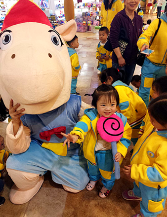 一早,馬小樂哥哥和項目輔導師姐姐們在華億步行街店南北樓連廊平臺樓下列隊等待,迎接大拇指幼兒園的小朋友。大家集合后項目輔導師為每位小朋友洗手消毒,保證小朋友在安全健康的環境下度過快樂的春游時光。