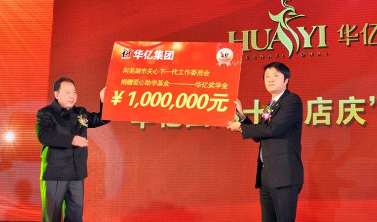 華億獎學金,全稱為"蕪湖市愛心助學基金華億獎學金",由華億集團向蕪湖市關心下一代工作委員會捐資200萬元設立。市關工委將以此筆捐資為"資金池",通過擴大捐資規模、穩健經營管理,不斷擴大“華億獎學金的規模和效應,充分發揮“華億獎學金”的社會功能,將華億人的愛心不斷放大并傳遞下去。獎學金設立以來,每年暑期開學前向優秀學子代表發放,受到社會廣泛關注。