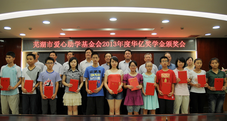 • 8月8日上午,蕪湖市愛心助學基金會2013年度華億獎學金頒獎會在華億國際報告廳舉行。會上為來自蕪湖市四區四縣成績優異的16名...