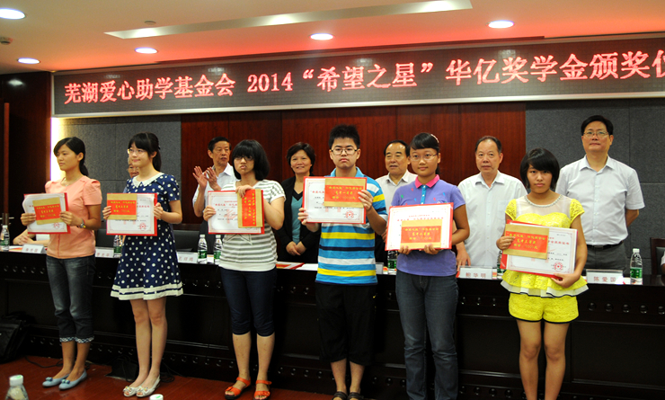 • 8月20日上午,蕪湖市愛心助學基金會舉行2015年度“希望之星”華億獎學金頒獎儀式。18位在今年中、高考中取得優異成績的學生獲獎。