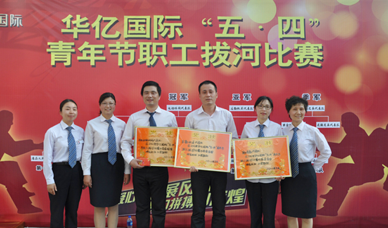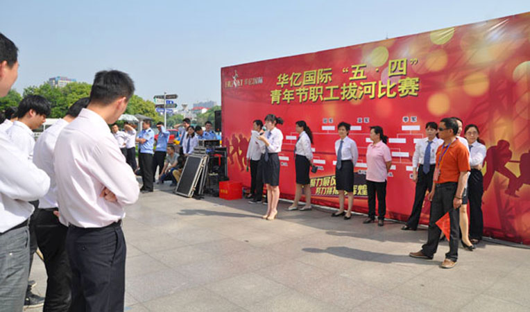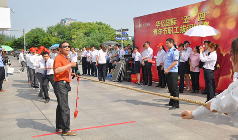 2012年5月4日,為慶祝“五四”青年節(jié),華億國際在步行街華億廣場A座門前廣場舉辦了“五?四青年節(jié)職工拔河比賽”。