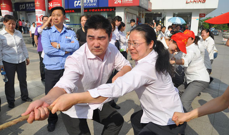 比賽的哨聲一響起,各隊隊員們雙手緊握長繩,憋足了勁拼命往后拉,他們的“粉絲們”自發(fā)組成啦啦隊,口中一起高呼著“加油,加油”為各個隊伍加油鼓勁。號子聲、吶喊聲,此起彼伏,飄蕩在華億國際的上空。歡騰的場面,感染了步行街上的眾多行人,商場的顧客朋友也紛紛出來駐足觀看,現(xiàn)場感受華億國際的文化氛圍。整場比賽氣氛熱烈,秩序井然,展示了良好的組織能力和水平。經(jīng)過激烈的較量,最終運動休閑部獲得冠軍,后勤機關(guān)隊獲得亞軍,皮鞋皮具部獲得季軍,珠寶、化妝、床品兒用、男裝、女裝五隊得到了優(yōu)勝獎.